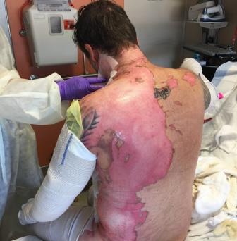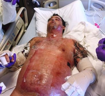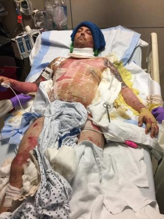 suffering 2nd and 3rd degree burns on about 60% of his body when a